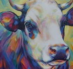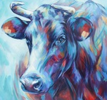 - Expositie van kleurrijke koeien en dierenschilderijen